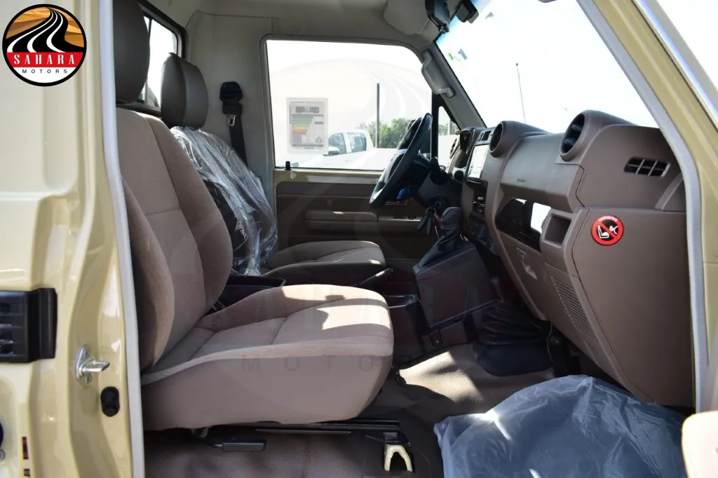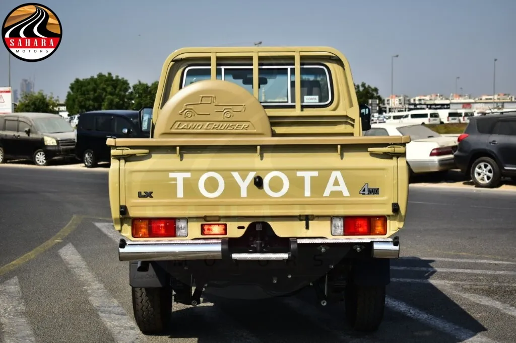 The 2025 Toyota Land Cruiser 79 Single Cab Pickup DX is a rugged and reliable vehicle designed for both urban and off-road challenges. Powered by a 2.8L Diesel engine that meets Euro 5 emissions standards, it delivers optimal performance and efficiency with an automatic transmission for smooth driving. Its advanced 4WD system ensures superior traction on demanding terrains, while the spacious single cab offers practical seating and durable materials. Safety features like airbags and stability control meet stringent standards, and a basic infotainment system with Bluetooth connectivity enhances convenience. With its distinctive rugged design and functional pickup bed, the Land Cruiser 79 is perfect for work and recreational activities, continuing its legacy as a favorite among off-road enthusiasts.