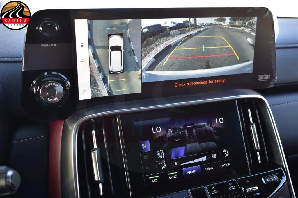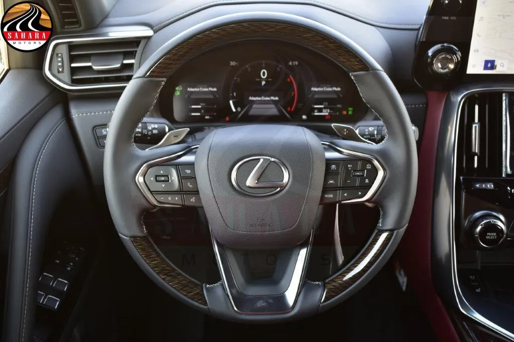 The 2025 Lexus LX600 is powered by a 3.5L V6 turbo engine that delivers an impressive 409 horsepower at 5200 RPM and a robust torque of 650 Nm between 2000 and 3600 RPM. It features a 10-speed automatic transmission for smooth shifting and optimal performance. The SUV is equipped with a generous 110-liter fuel tank, ensuring long-distance travel without frequent refueling. Its striking design includes triple beam LED headlights and convenient soft door closing. Inside, the luxurious leather and wood steering wheel provide a premium feel, while the third-row power seats offer versatility and comfort for all passengers.