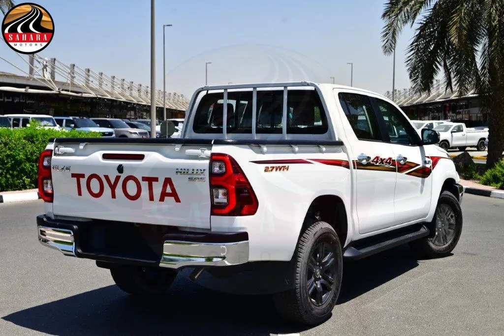 The 2025 Toyota Hilux Double Cab Pickup GLX-S V 2.7L Petrol 4WD is a robust and versatile vehicle designed for both work and leisure. Featuring a spacious 5-seater cabin with premium materials, it combines comfort with practicality. The powerful 2.7L petrol engine delivers reliable performance, complemented by an automatic transmission for smooth driving. With its advanced 4WD system, the Hilux excels in off-road conditions, while modern safety features and technology ensure a secure and connected driving experience. Whether navigating city streets or rugged terrain, the Hilux stands out as a dependable and stylish choice.
