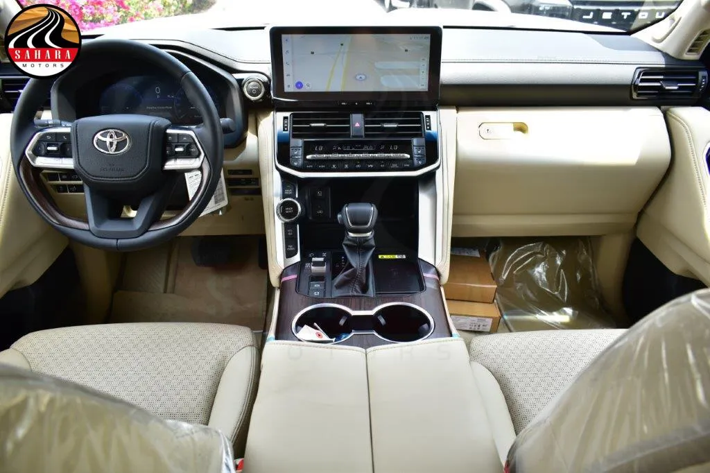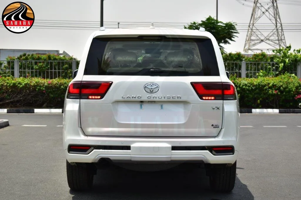 The 2025 Toyota Land Cruiser 300 Hybrid VX is a luxurious and powerful SUV equipped with a V6 3.5L hybrid engine and smooth automatic transmission, delivering both efficiency and robust performance. With a 4WD system and seating for up to 7 passengers, it excels in both comfort and versatility. The interior features premium materials, advanced infotainment, and Toyota Safety Sense for enhanced safety. Its bold exterior design, complete with LED lighting and stylish alloy wheels, complements its off-road capabilities. Ideal for urban driving and rugged adventures alike, this SUV embodies a perfect blend of luxury and functionality.