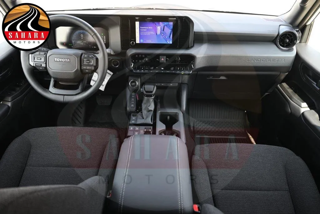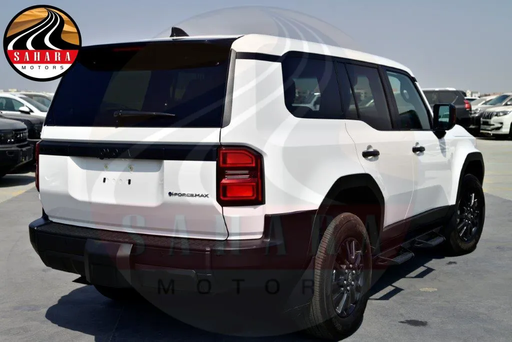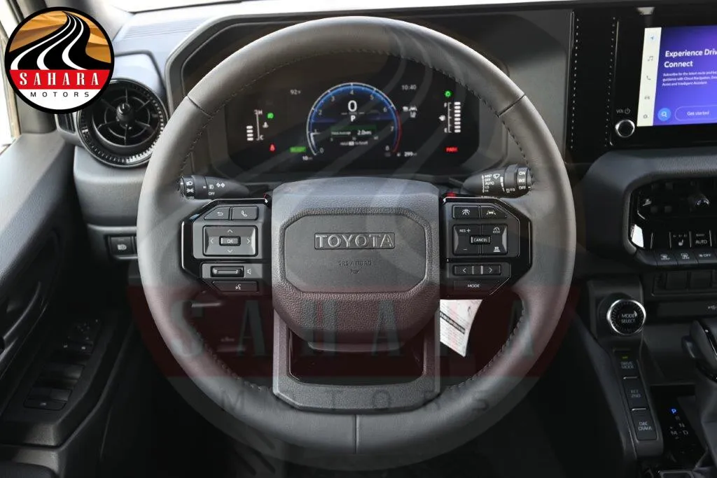 The Toyota features a comprehensive multimedia system with an 8” display, offering connectivity through a 10-year trial of Service & Safety Connect and a 3-year trial of Remote Connect. It includes a 6-speaker audio system and supports wireless Apple CarPlay® and Android Auto™. Comfort features include heated front seats and a leather steering wheel, while performance is enhanced by full-time 4WD, a locking rear differential, and a 2400W AC inverter. Safety is prioritized with Toyota Safety Sense™ 3.0, which includes advanced features like Lane Departure Alert, Dynamic Radar Cruise Control, and a Pre-Collision System. The 2024 Toyota Land Cruiser 250 i-FORCE MAX Hybrid stands out as a versatile and powerful SUV that is built to meet the demands of modern drivers. With its combination of hybrid efficiency, advanced safety features, and luxurious comfort, it is suited for both everyday use and adventurous excursions.