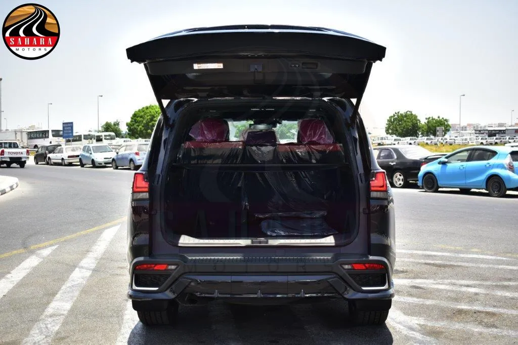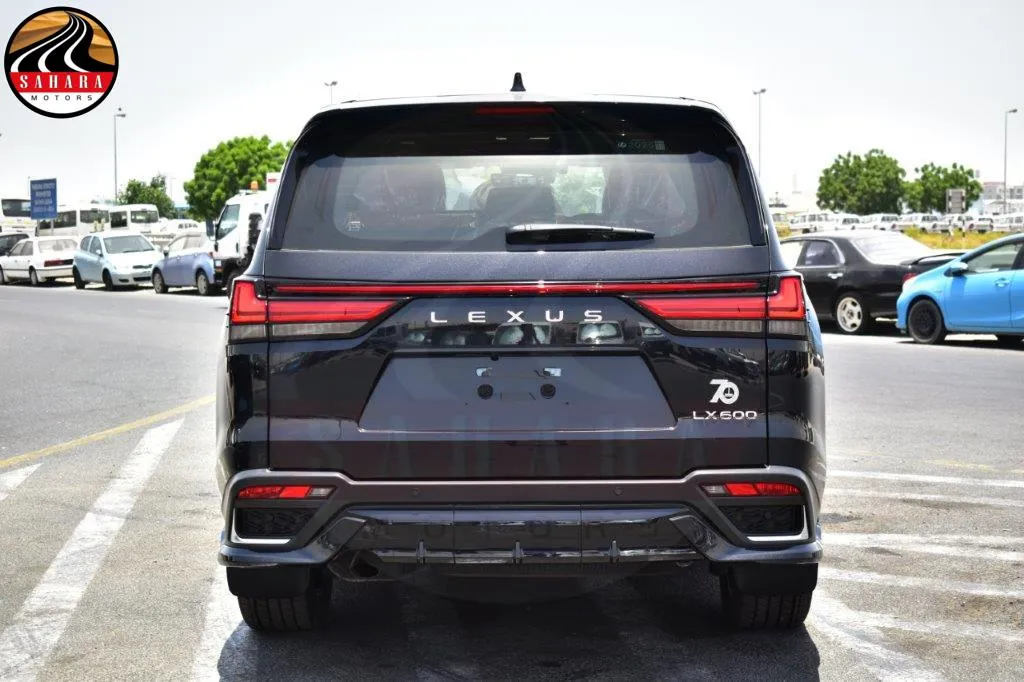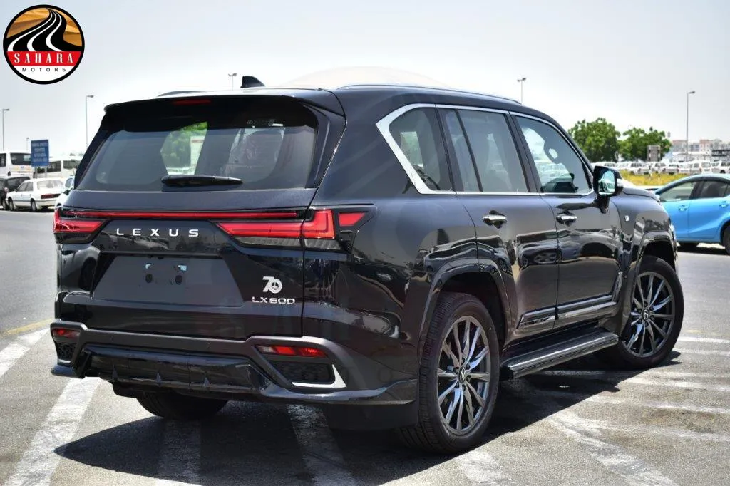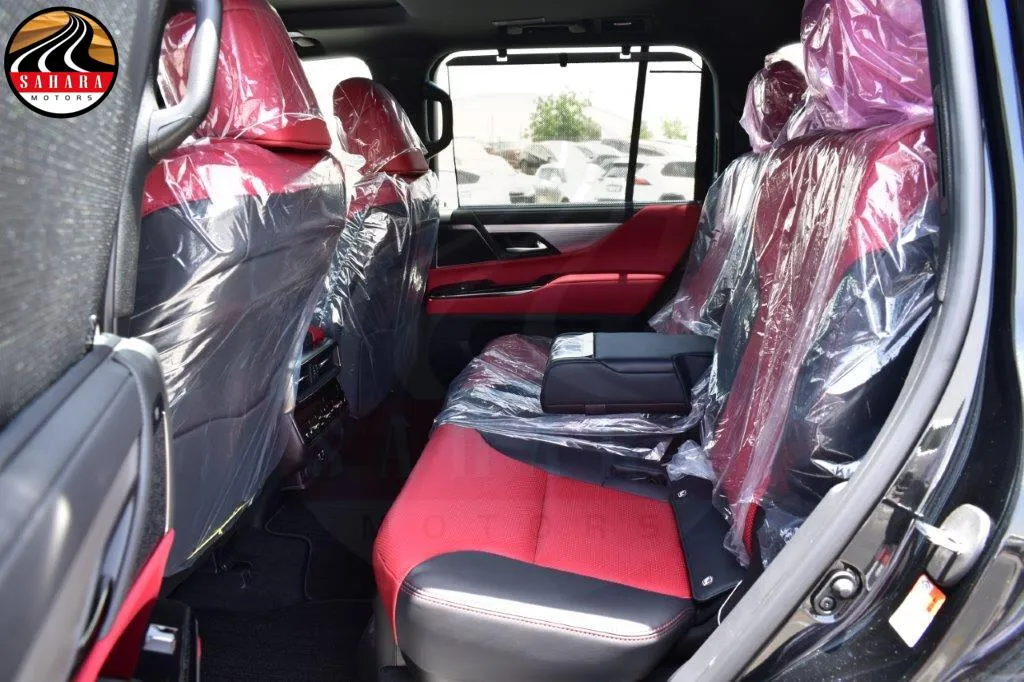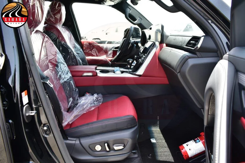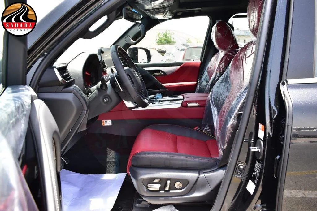 The 2025 Lexus LX600 F-Sport is equipped with advanced safety and convenience features, including Vehicle Dynamics Integrated Management (VDIM) and Dynamic Radar Cruise Control (DRCC) for enhanced driving stability. The Pre-Collision System (PCS) and Lane Tracing Assist (LTA) ensure safety on the road, while the Blind Spot Monitor and Rear Cross Traffic Alert (RCTA) provide additional awareness. Inside, the cabin features ten SRS airbags, auto door close, and an F Sport exterior package that includes 22-inch F Sport wheels and a sporty steering wheel. The five-seater layout includes massage seats for both the driver and passenger, along with F Sport leather seats that offer front and rear ventilation and a memory seat function for the driver. The vehicle also boasts Triple Beam LED headlamps with Adaptive High Beam System (AHS), a power rear door with kick sensor, a 12.3-inch front display for navigation, a 7-inch display for climate control, a mobile wireless charger, a digital rearview mirror, and a premium Mark Levinson audio system with 25 speakers for an unparalleled driving experience.