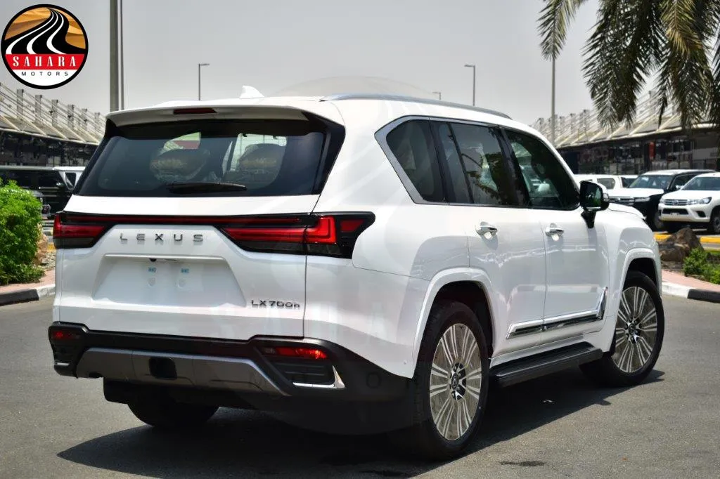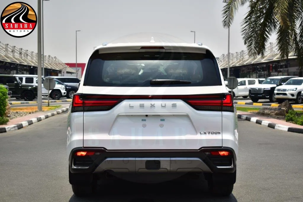 The 2025 Lexus LX 700h Hybrid is a luxury SUV featuring a powerful 3.5L V6 hybrid engine and advanced all-wheel drive, accommodating up to 7 passengers in a spacious, high-end interior. With a smooth automatic transmission and exceptional fuel efficiency, it delivers both performance and versatility. The vehicle boasts premium leather upholstery, a state-of-the-art infotainment system, and advanced safety features such as adaptive cruise control and lane-keeping assist. Its bold exterior design, complemented by stylish alloy wheels, makes the LX 700h an ideal choice for families and adventure enthusiasts alike.