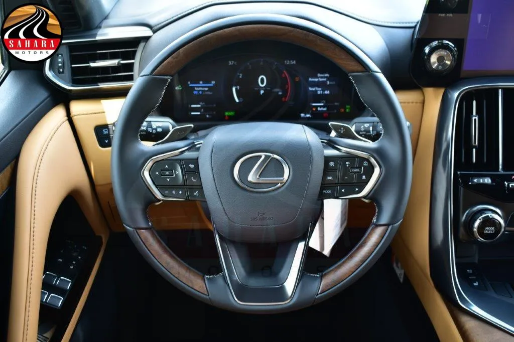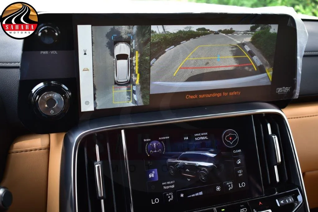 The 2025 Lexus LX 700h Hybrid is equipped with advanced technology features designed to enhance both comfort and convenience. It includes Adaptive Variable Suspension (AVS) and Active Height Control (AHC) for optimal ride quality. Security features like fingerprint recognition and Ultra Wide Band (UWB) protection provide added safety. The vehicle offers Active Cruise Control and a Remote Engine Start function for ease of use, alongside a Head-Up Display (HUD) that keeps critical information in the driver’s line of sight. Additional features include headlamp cleaners, power steering, and a comprehensive camera system with four cameras and washers, complemented by four front and four rear sensors. The Panoramic View Monitor (PVM) and Blind Spot Monitor (BSM) enhance visibility, while the Multi Terrain Monitor (MTM) and Multi Terrain Select (MTS) assist in off-road conditions. Practical features like a power back door, side door easy closer, and rain sensors add to the convenience. The vehicle also includes an intrude sensor and various driving modes (Normal, Eco, Comfort, Sport, Sport+) to tailor the driving experience, along with an auto parking system for effortless parking.