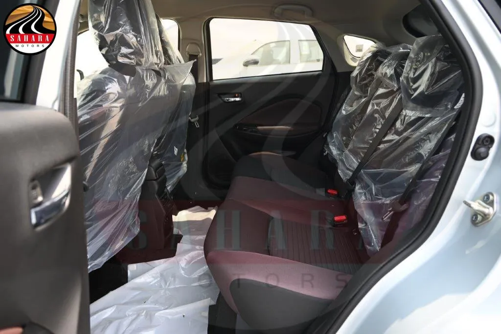 Inside the Fronx GLX, comfort and technology come together seamlessly. The cabin features automatic air conditioning and a 9-inch display audio system equipped with Bluetooth and nine speakers, ensuring a great audio experience. The 4.2-inch color LCD display and head-up display provide essential information at a glance, while the keyless entry and push-start system enhance convenience. Additional features like a wireless charger, USB ports, and cruise control elevate the driving experience, making each journey enjoyable for both the driver and passengers. The upholstery combines fabric and synthetic leather, adding a touch of elegance to the interior.