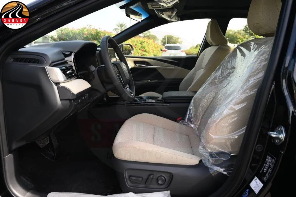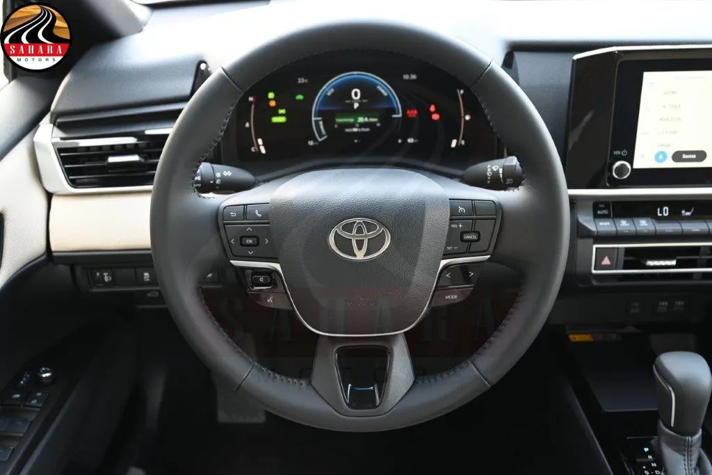 The 2025 Toyota Camry LE Hybrid is a stylish and efficient sedan powered by a 2.5L Inline-4 hybrid engine, delivering a combined output of 226 horsepower through an electronically controlled continuously variable transmission (e-CVT). With an impressive fuel economy of approximately 51 MPG combined, it features a spacious interior that comfortably seats five, equipped with premium fabric upholstery, an 8-way power-adjustable driver's seat, and a 9-inch touchscreen infotainment system compatible with Apple CarPlay and Android Auto. Safety is prioritized with Toyota Safety Sense 2.5, which includes advanced features like lane departure alert and dynamic radar cruise control, along with a suite of airbags. The exterior boasts 17-inch alloy wheels, LED headlights, and a panoramic sunroof, making the Camry LE Hybrid a perfect blend of comfort, technology, and safety.