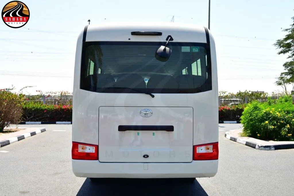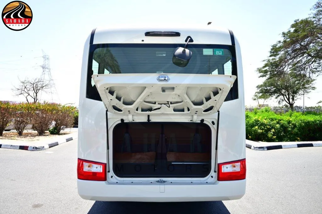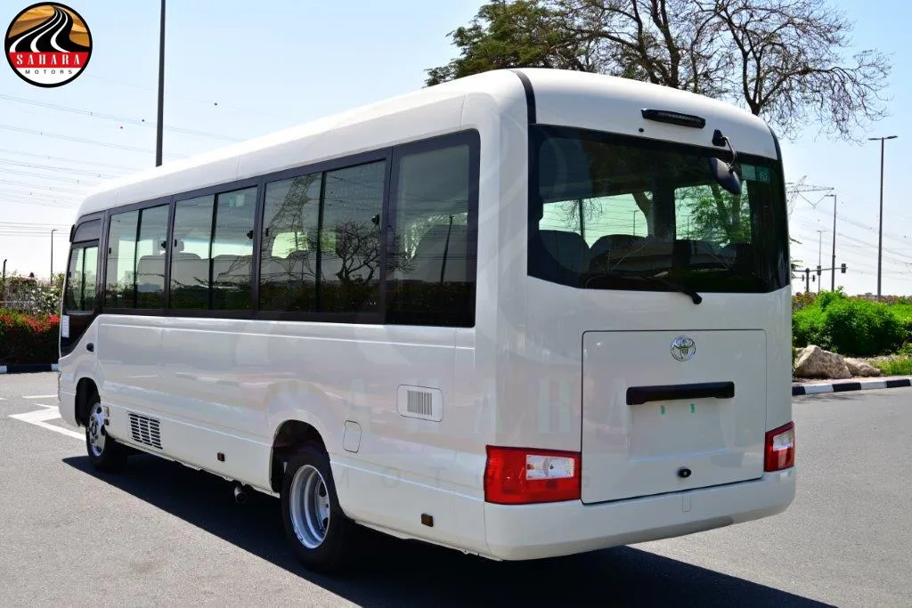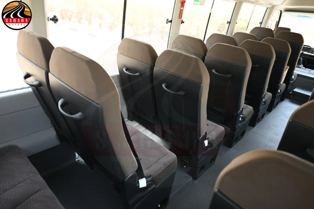 The 2025 Toyota Coaster High Roof DLX is a spacious 23-seater vehicle powered by a 2.7L petrol engine and equipped with a manual transmission, making it ideal for group travel. Its high roof design provides ample headroom, enhancing comfort, while the interior is designed for easy access and passenger convenience. Safety features such as airbags and ABS ensure a secure ride, and the climate control system keeps everyone comfortable during journeys. With its combination of reliability, fuel efficiency, and smooth handling, the Coaster is perfect for schools, businesses, and tour operators looking to transport larger groups effectively.