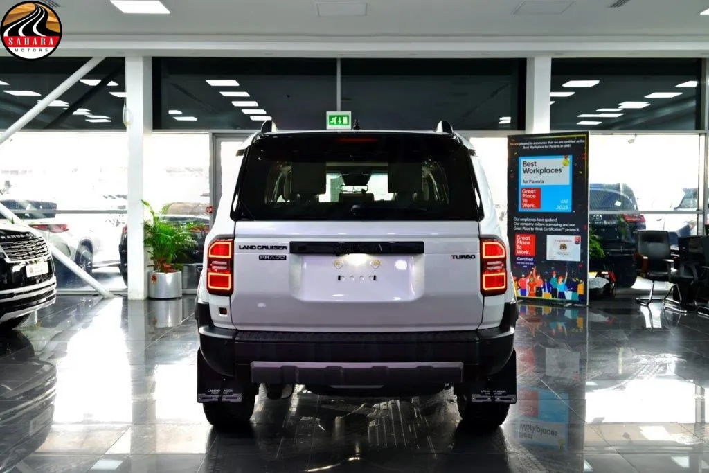 Elevate your off-road explorations with the all-new 2024 Toyota Land Cruiser 250 Prado Adventure First Edition, available for Sale in Sahara Motors Dubai. This iconic nameplate has been reimagined for the modern adventurer, blending uncompromising capability with premium comfort and technology. Powered by a potent 2.4L turbocharged 4-cylinder engine mated to an 8-speed automatic transmission, the Prado Adventure First Edition delivers exceptional performance both on and off the beaten path. With standard 4WD and a suite of advanced off-road technologies, this Land Cruiser is ready to tackle the toughest terrain with confidence. Seating for up to 7 passengers ensures you can bring the whole crew along for the journey.