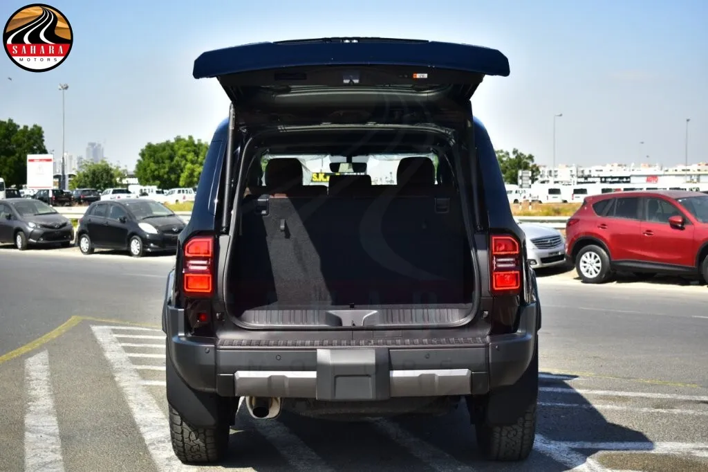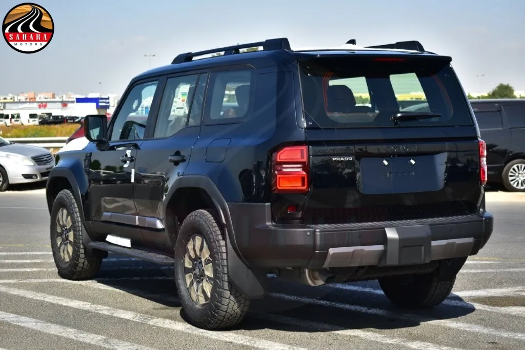 The 2026 Toyota Land Cruiser 250 Prado Adventure is equipped with a powerful 2.4L turbo 4-cylinder engine, producing a maximum output of 267 HP at 6000 RPM and a torque of 430 Nm between 1700 and 3600 RPM. It features an 8-speed automatic transmission and a full-time 4WD system with a transfer case for high and low gearing, along with central and rear differential locks for enhanced off-road capability. The SUV has a fuel tank capacity of 110 liters and achieves a fuel consumption rate of 10.6 km/L. Designed to accommodate up to seven passengers, including the driver, the vehicle is fitted with tires sized 265/65R18. Its dimensions measure 4990 mm in length, 1980 mm in width, and 1925 mm in height.