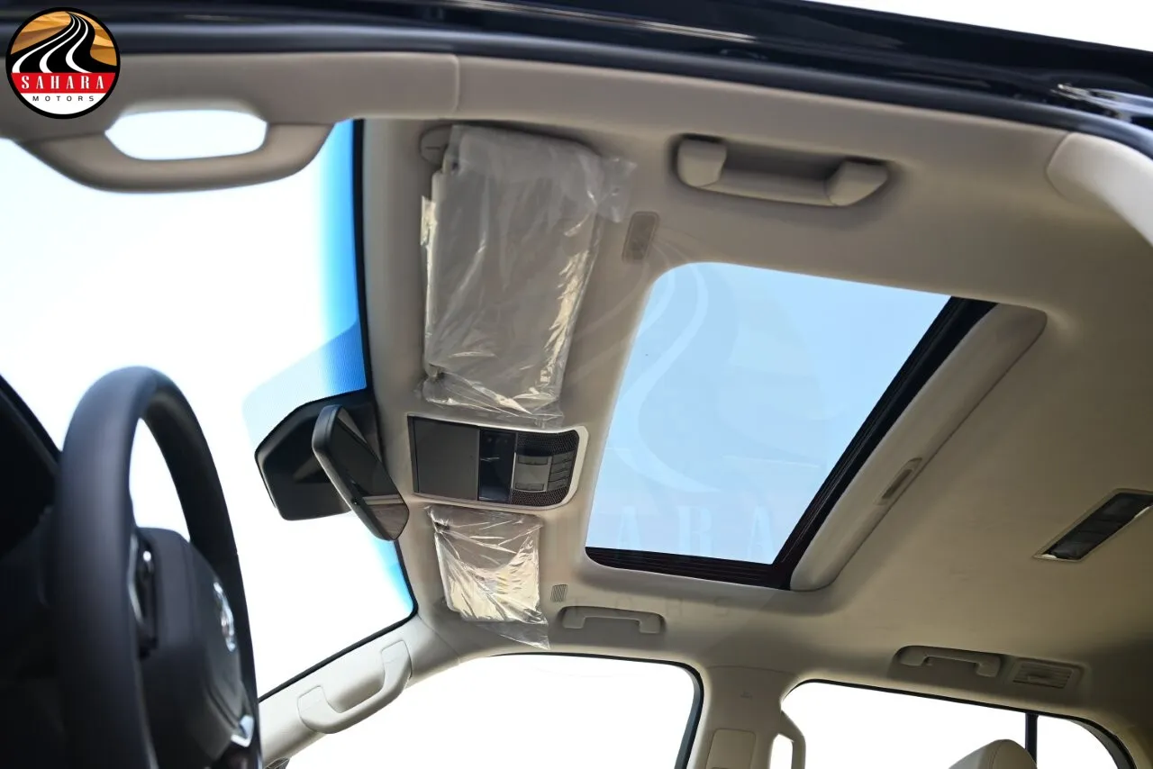 The 2026 Toyota Land Cruiser 300 VXR+ carries the model code GRJ300L-GNTVKV and is powered by a 3,956 cc V6 engine (1GR FE, DOHC) that produces 271 hp at a specified RPM and delivers a torque of 39.25 kgm. This SUV utilizes an EFI fuel system with Dual VVT-i, suitable for unleaded gasoline and compliant with Euro 4 standards. The fuel tank capacity stands at an impressive 110 liters, supporting its adventurous spirit. It features a 6-speed automatic transmission (multi-mode) and full-time 4WD options, enhanced by a torque-sensing center LSD along with front, center, and rear diff locks for improved traction. The Land Cruiser is equipped with alloy wheels and rides on 265/55R20 tires, combining rugged performance with refined style.
