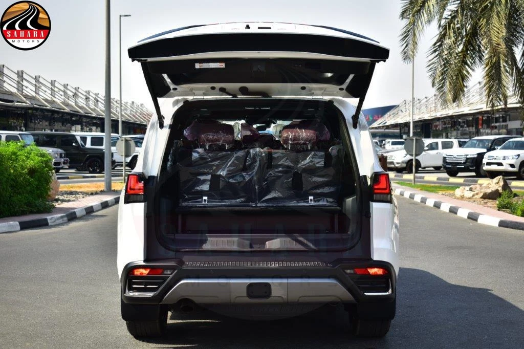 The 2026 Lexus LX 700h Hybrid is a luxury SUV featuring a powerful 3.5L V6 hybrid engine and advanced all-wheel drive, accommodating up to 7 passengers in a spacious, high-end interior. With a smooth automatic transmission and exceptional fuel efficiency, it delivers both performance and versatility. The vehicle boasts premium leather upholstery, a state-of-the-art infotainment system, and advanced safety features such as adaptive cruise control and lane-keeping assist. Its bold exterior design, complemented by stylish alloy wheels, makes the LX 700h an ideal choice for families and adventure enthusiasts alike.
