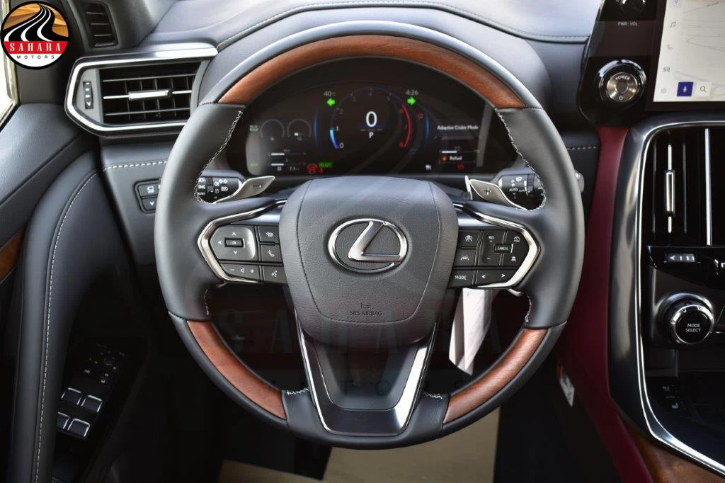 The 2026 Lexus LX 700h Hybrid is equipped with advanced technology features designed to enhance both comfort and convenience. It includes Adaptive Variable Suspension (AVS) and Active Height Control (AHC) for optimal ride quality. Security features like fingerprint recognition and Ultra Wide Band (UWB) protection provide added safety. The vehicle offers Active Cruise Control and a Remote Engine Start function for ease of use, alongside a Head-Up Display (HUD) that keeps critical information in the driver’s line of sight. Additional features include headlamp cleaners, power steering, and a comprehensive camera system with four cameras and washers, complemented by four front and four rear sensors. The Panoramic View Monitor (PVM) and Blind Spot Monitor (BSM) enhance visibility, while the Multi Terrain Monitor (MTM) and Multi Terrain Select (MTS) assist in off-road conditions. Practical features like a power back door, side door easy closer, and rain sensors add to the convenience. The vehicle also includes an intrude sensor and various driving modes (Normal, Eco, Comfort, Sport, Sport+) to tailor the driving experience, along with an auto parking system for effortless parking.