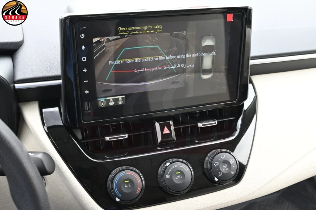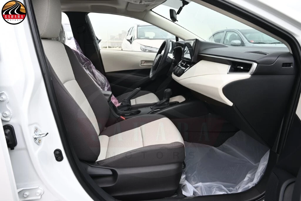 The 2026 Toyota Corolla Executive is designed with comfort and convenience in mind, featuring high-quality fabric seats that provide a cozy atmosphere for both driver and passengers. The engine stop/start button adds a modern touch, allowing for seamless vehicle operation, while the manual air conditioning and rear AC vent ensure a pleasant climate regardless of the weather. The steering wheel comes equipped with audio controls for easy access to the sound system, which features a 9-inch touchscreen audio system with Bluetooth and Apple CarPlay compatibility, along with six speakers for an immersive audio experience. Additionally, dual rear USB chargers and a USB port keep devices powered during travels. The panoramic view monitor enhances visibility when maneuvering, while comprehensive safety features, including driver and front passenger airbags, front side airbags, and parking sensors for both the front and rear, provide peace of mind.