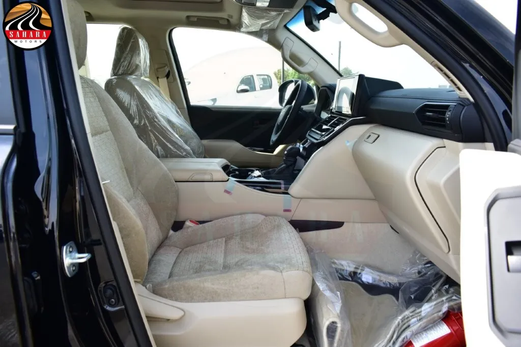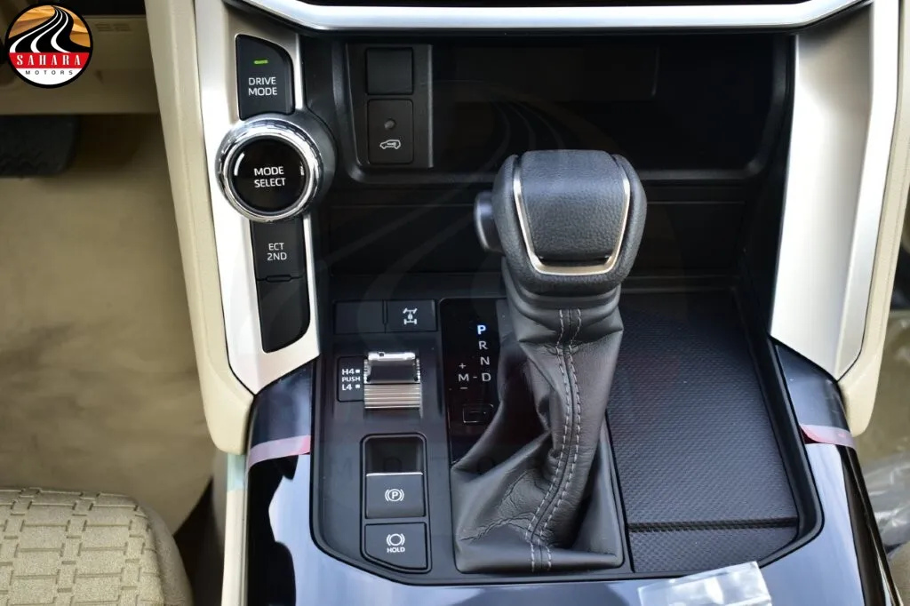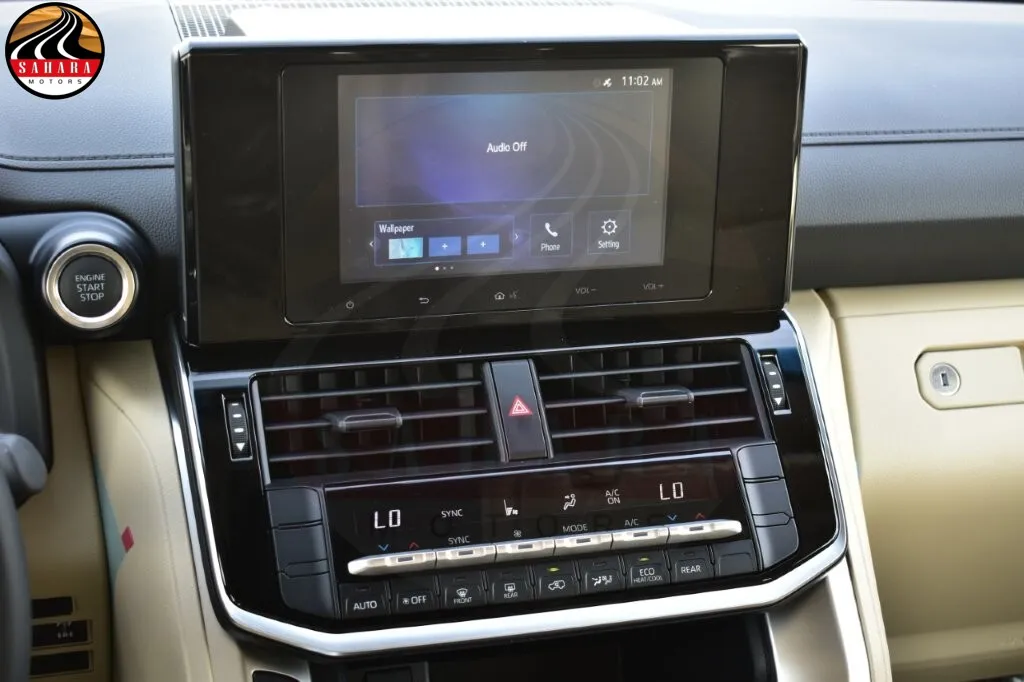 The 2025 Toyota Land Cruiser 300 GXR-G1 boasts an array of luxurious and advanced features, enhancing both comfort and performance. It includes tri-zone air conditioning and plush fabric-suede seats, with the driver’s seat being power-adjustable for tailored comfort. A sun/moon roof with jam protection enhances the driving experience, while the piano wood grain package and leather-wrapped steering wheel add a touch of elegance. Keyless push start, an Optitron meter with a multi-information display, and an electric parking brake with brake hold provide convenience at your fingertips. For entertainment, the vehicle offers a 9-inch audio system with AM/FM, FM sub, DAB, and roof-mounted options, complemented by six speakers. Apple CarPlay and Android Auto ensure seamless connectivity. Safety features include an anti-lock braking system (ABS), brake assist (BA), emergency stop signal (ESS), and dual front and knee airbags, providing peace of mind on the road.