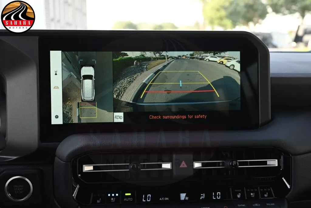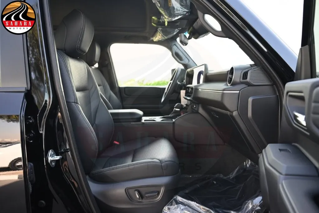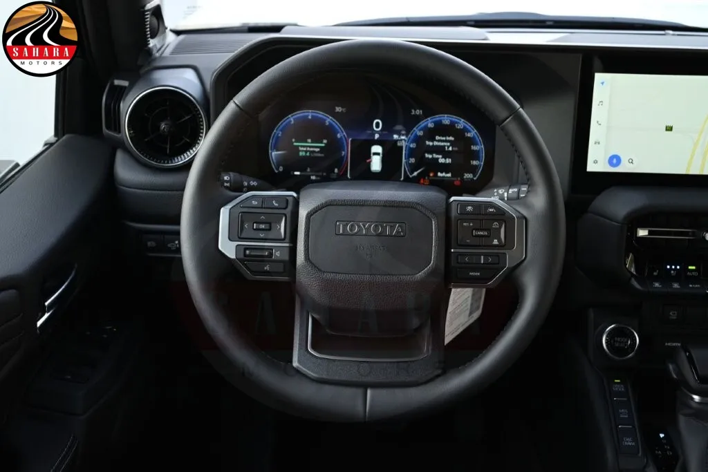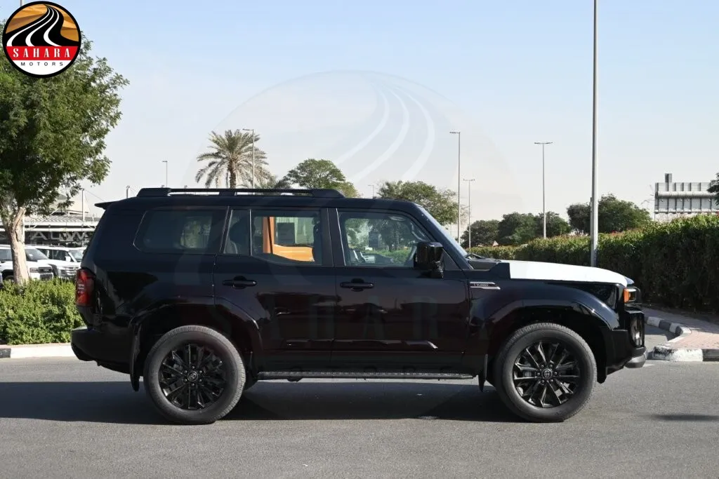 The 2026 Toyota Prado 2.4L Gas Turbo Luxury High M is equipped with a range of advanced features designed for comfort and safety, including a 220V/100W AC inverter with a single outlet deck and an integrated sport driving system with five modes plus customization. It features a lane-keeping assist system (LTA), a power auto and easy-closer back door, and LED high beam headlamps for enhanced visibility. With paint protection film, a rear and rear side blind spot monitor (BSM), and an outside rearview mirror equipped with memory, lamps, BSM, and a camera, it ensures comprehensive awareness. Additional conveniences include a peripheral monitor camera, towing package hitch, tonneau cover, and a rear console box fridge with a floor cover. The luxurious interior features leather seat covers, an electric inside rearview mirror, a wireless charger, and an anti-theft system, all complemented by a sunroof, making the Prado a versatile and well-appointed SUV.