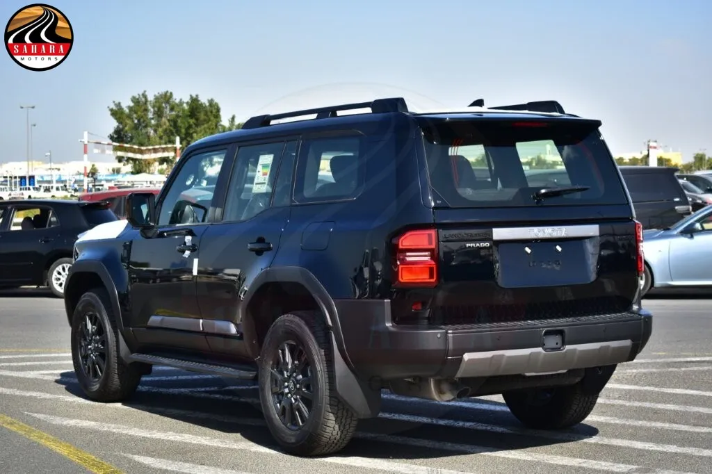 The 2026 Toyota Prado TXL-3 boasts a range of impressive exterior features designed for both functionality and style. It comes equipped with 18-inch alloy wheels that enhance its rugged appearance. The front is highlighted by LED headlights with a sleek rectangular design, complemented by LED daytime running lights (DRL) and LED front fog lamps for improved visibility in various conditions. A silver front grille adds a touch of elegance, while body-colored side view mirrors with TSL (Turn Signal Lights) and power auto-retractable features provide added convenience. Body-colored door handles maintain a cohesive look, and the inclusion of a pintle hook enhances towing capabilities. Mud guards protect the vehicle from debris, and side steps offer easier access to the cabin. A rear spoiler adds a sporty flair, along with a power back door for easy loading and unloading. The back door glass can also be opened separately for added accessibility, and roof rails make it ideal for carrying additional cargo. Overall, these features combine to create a vehicle that's both practical and stylish.