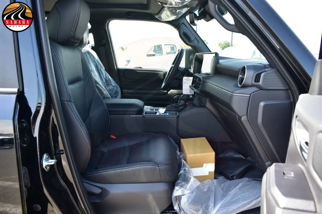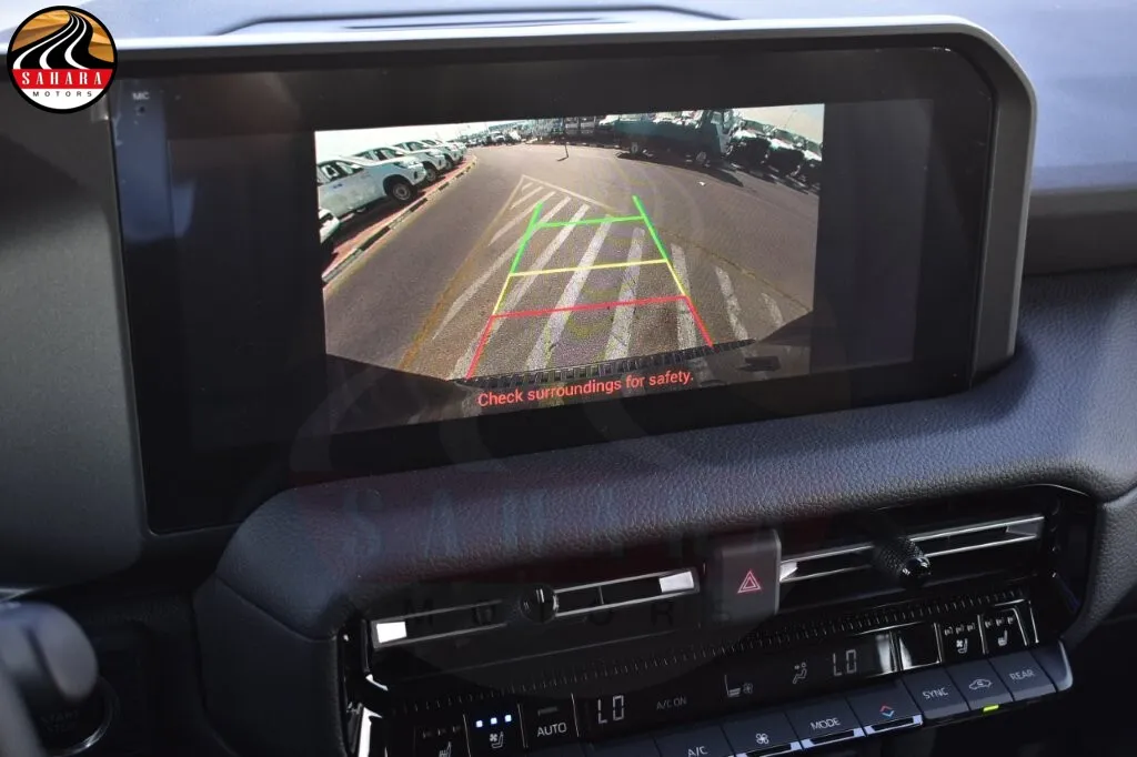 The 2026 Toyota Prado TXL-3 features a luxurious interior with leather upholstery and a powered driver seat, complemented by ventilated and heated front seats for optimal comfort. The leather steering wheel and shift knob enhance the premium feel, while controls on the steering wheel provide easy access to functions. A 7-inch multi-information display, dual-zone automatic climate control, and illuminated vanity mirrors add practicality, alongside automatic power windows and a tonneau cover for cargo security. For entertainment, it offers a 12.3-inch audio display with USB-C and HDMI ports, Apple CarPlay compatibility, and a 6-speaker sound system. Additional conveniences include a smart entry system, engine start/stop button, remote engine starter, moon roof, cool box, front and rear parking sensors, courtesy lamps, and a rear camera, creating a sophisticated and comfortable driving experience.